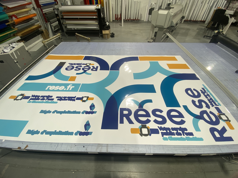 Découpage de plaques ou de bâches (ex : PVC, Dibond, akylux, adhésif ) avec la sünd.